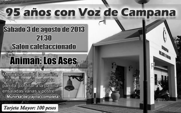 El menú ofrecido en la ocasión es: salamín a la parrilla, pata muslo de pollo a la parrilla, costillar a la parrilla, ensaladas varias y postre, no incluyendo bebida y teniendo los asistentes que concurrir con vajilla completa. La parte musical tendrá a «Los Ases» como animadores.