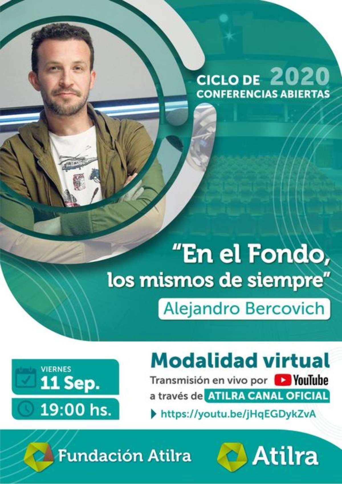 Desde Fundación Atilra anticiparon que este venidero viernes se podrá acceder a una nueva charla, la cual estará enmarcada en el Ciclo de Conferencias Abiertas 2020. La misma estará a cargo de Alejandro Bercovich, siendo: «En el Fondo, los mismos de siempre».