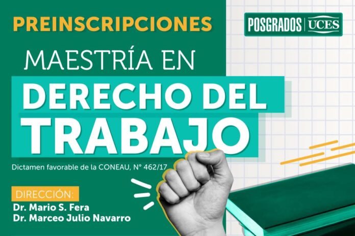Desde el Centro Educativo Tecnológico de Atilra se informó acerca de la apertura de preinscripciones para la Maestría en Derecho del Trabajo, la cual es dictada por Uces y se iniciará en el transcurso del mes de agosto.