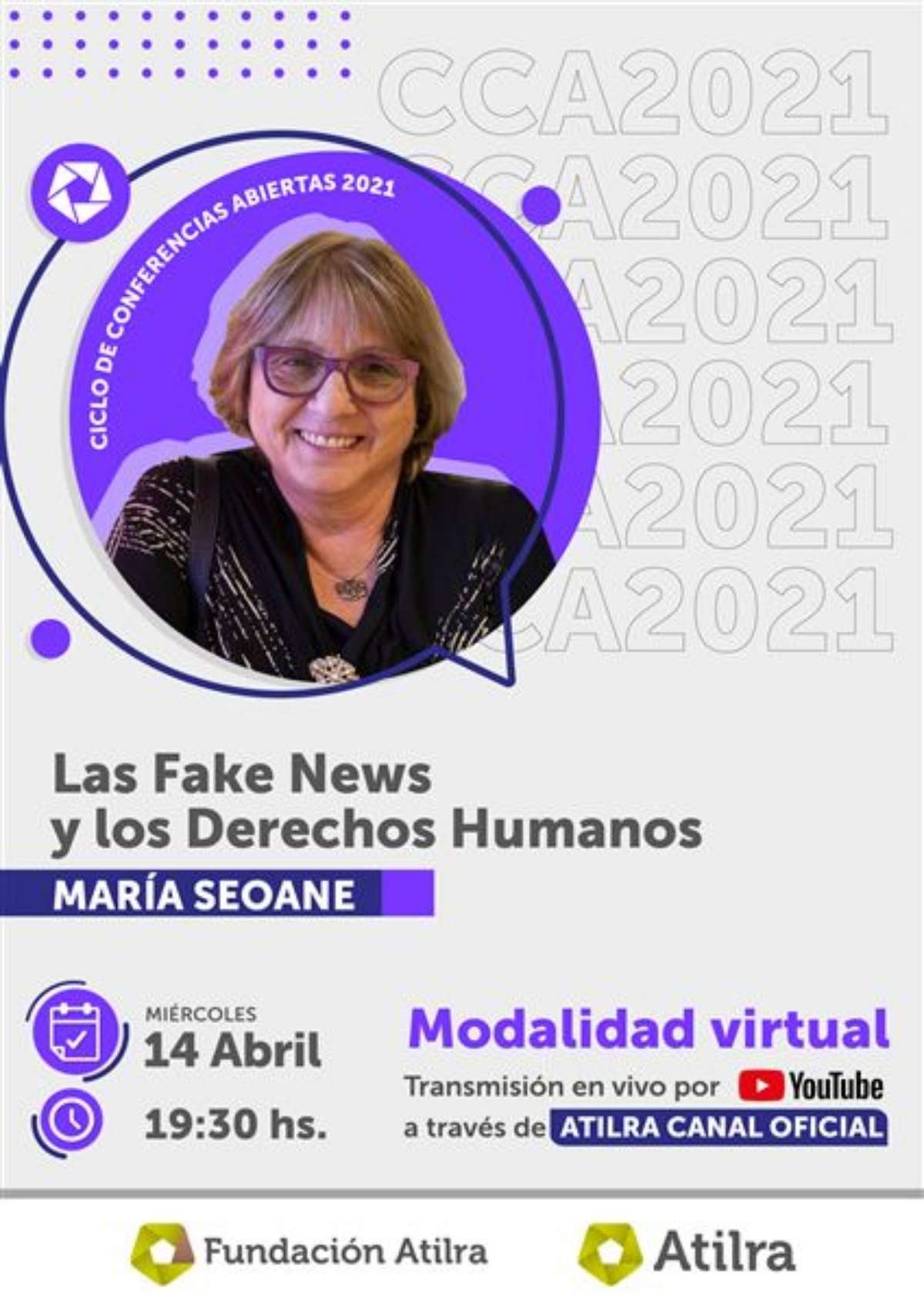 (Por: Prensa Atilra) – Fundación Atilra da inicio al Ciclo de Conferencias Abiertas 2021, en modalidad virtual. María Seoane, reconocida periodista y escritora con una vasta y prestigiosa carrera tanto en los medios, como en el ambiente literario, brindará una enriquecedora conferencia sobre las “Fake News”; un término que tomó mucha más relevancia en los últimos tiempos, pero que en esta oportunidad vamos a analizar en profundidad, develar el entramado que hay detrás de estas y su relación con los Derechos Humanos.