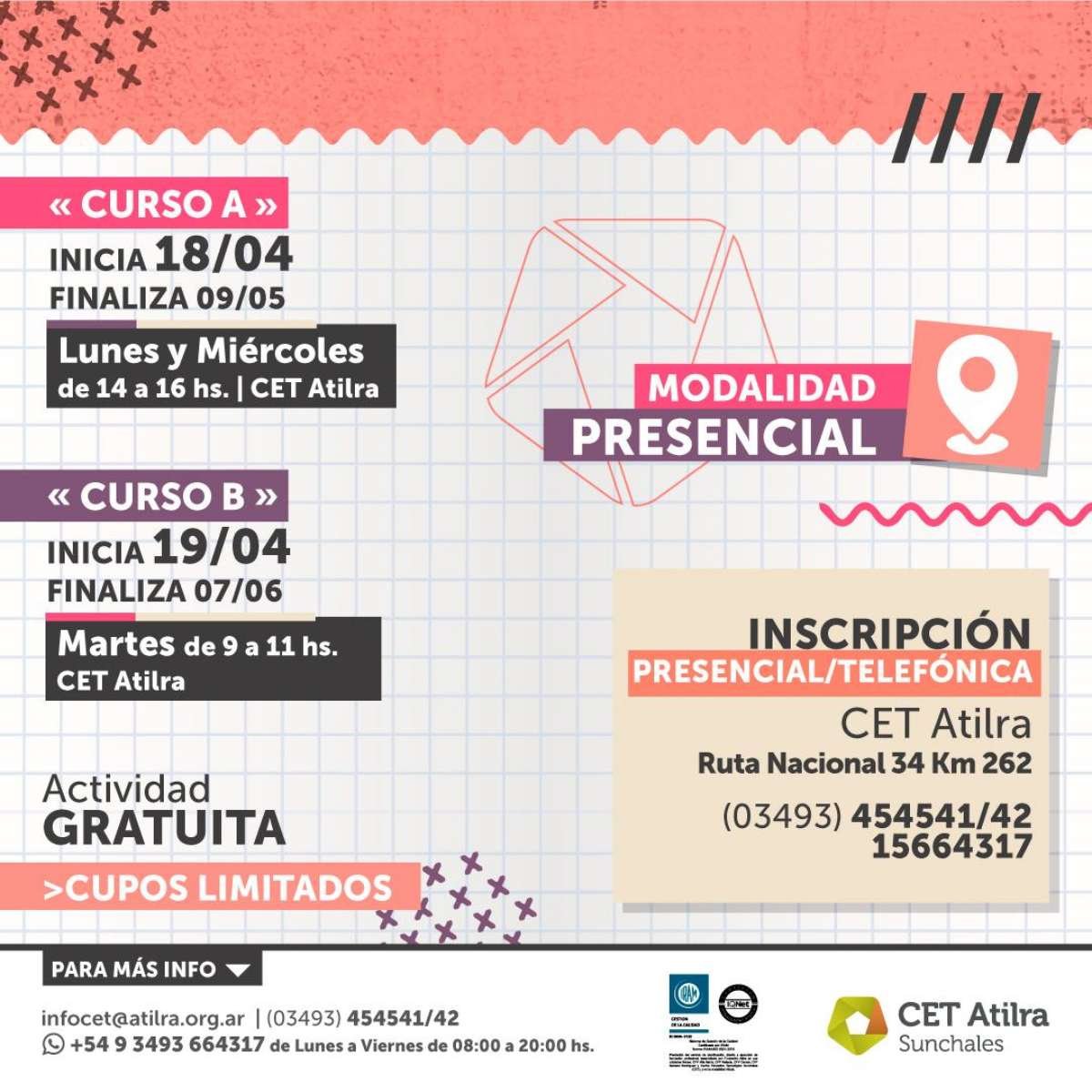 CET Atilra – Ruta Nacional 34 Km 262 – 03493 454541/42 – 15664317.