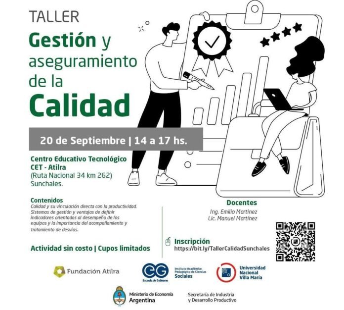 Esta actividad, totalmente gratuita, que acerca el Instituto Académico Pedagógico de Ciencias Sociales de la Universidad Nacional de Villa María en articulación con Fundación Atilra, propone el desarrollo de contenidos en relación a la calidad y su vinculación directa con la productividad. Los sistemas de gestión, las ventajas de definir indicadores orientados al desempeño de los equipos y la importancia del acompañamiento y tratamiento de desvíos.