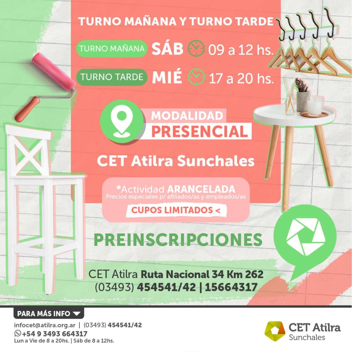 Desde el Centro Educativo Tecnológico de Atilra informaron que, de la mano de Carla Bellini, se ofrecerá un nuevo Taller, el cual estará orientado hacia la restauración de muebles, dándole dale vida a obras únicas y una segunda oportunidad a tus muebles y objetos de decoración.