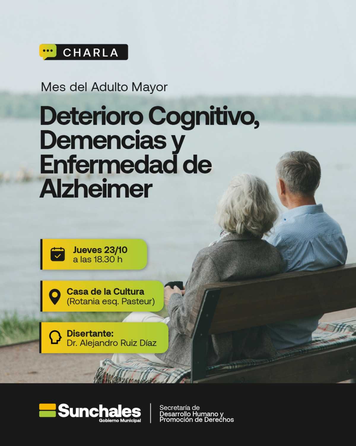 Desde el Municipio convocan a participar de la charla abierta sobre: «Deterioro Cognitivo, Demencias y Enfermedad de Alzheimer», que tendrá lugar mañana jueves a la hora 18.30, en la Casa de la Cultura.