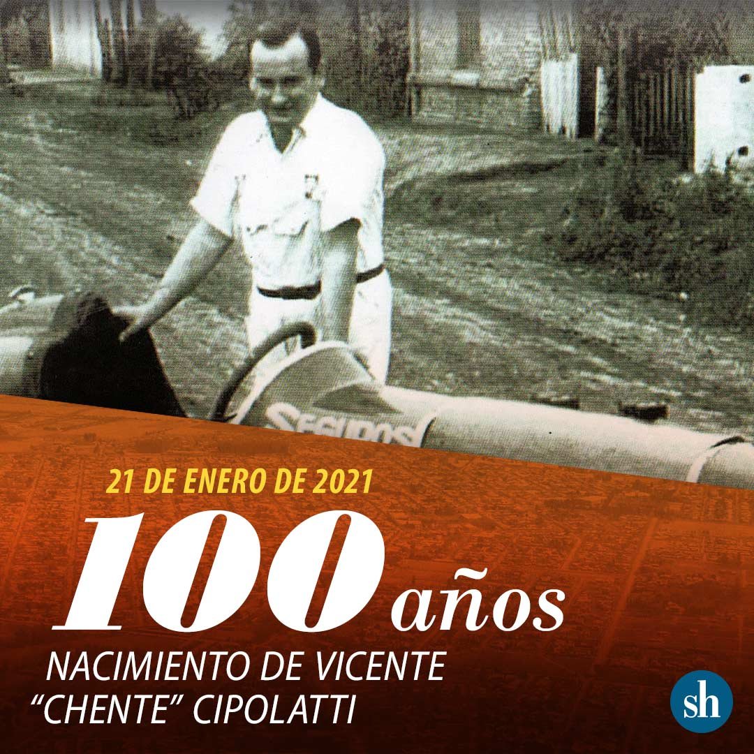 Referenciar la figura de Vicente Cipolatti resulta una tarea harto compleja a partir de la importancia de su figura para el deporte motor sunchalense. Además, su imagen se acrecienta más en esta fecha en la cual se evoca el Centenario de su nacimiento.
