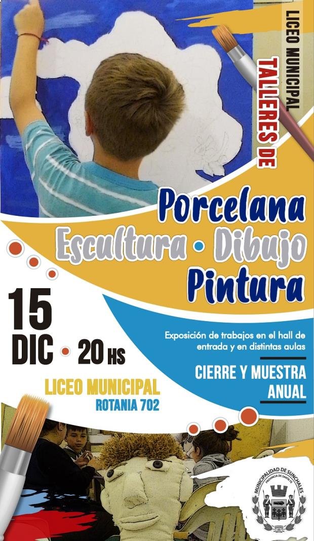 La Municipalidad de Sunchales invita a la muestra de fin de año de los talleres de dibujo, pintura, porcelana y escultura del Liceo Municipal.