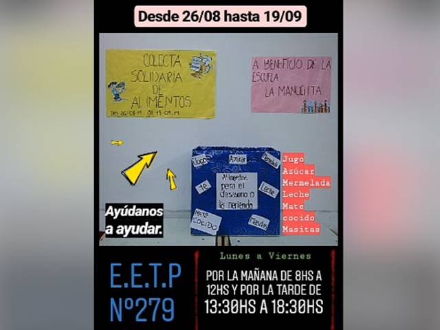 Desde la Cooperativa Escolar «Cepa» de la escuela de Educación Técnico Profesional Nº 279 «Benjamín Matienzo» llevan adelante una colecta solidaria de alimentos.