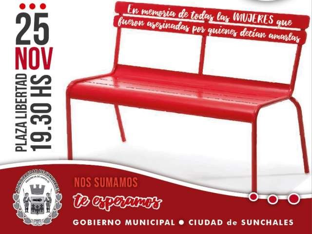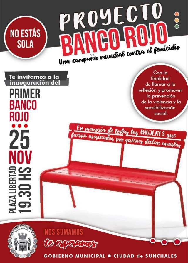 Desde el Municipio informaron que, dando cumplimiento a la Ordenanza N° 2802/2019 del pasado mes de octubre, este lunes se efectuará la colocación del primer Banco Rojo. El mismo estará ubicado en Plaza Libertad y forma parte de la adhesión local a una campaña internacional de sensibilización y visibilización de la violencia de género.