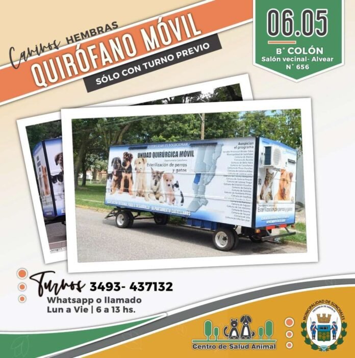 Desde la Comisión Vecinal del barrio Colón informaron que fin de semana estará en la sede vecinal el Quirófano Móvil, efectuando operaciones a caninos hembras que tengan turno previamente solicitado.