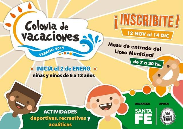 La Municipalidad de Sunchales informa a toda la comunidad que abrieron las inscripciones para la Colonia de Vacaciones del Ministerio de Educación de la provincia de Santa Fe.