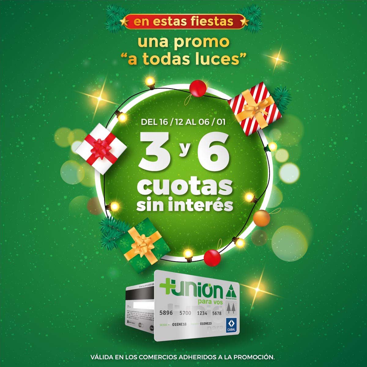 El lunes 16 comenzó la promoción «Felices Fiestas 2019» de Tarjeta +Unión, “una promo a todas luces”, que está a disposición en más de 350 comercios de Sunchales y zona.
