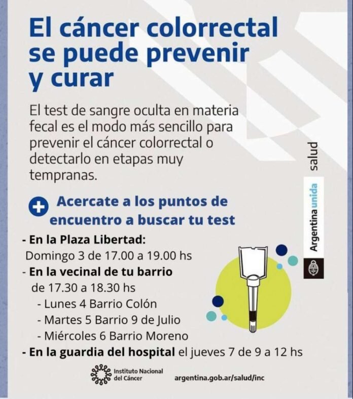 Este fin de semana se podrá en marcha una campaña de prevención de cáncer colo rectal en nuestra ciudad. La misma está impulsada desde el hospital «Almícar Gorosito» y recorrerá diferentes puntos de la ciudad.