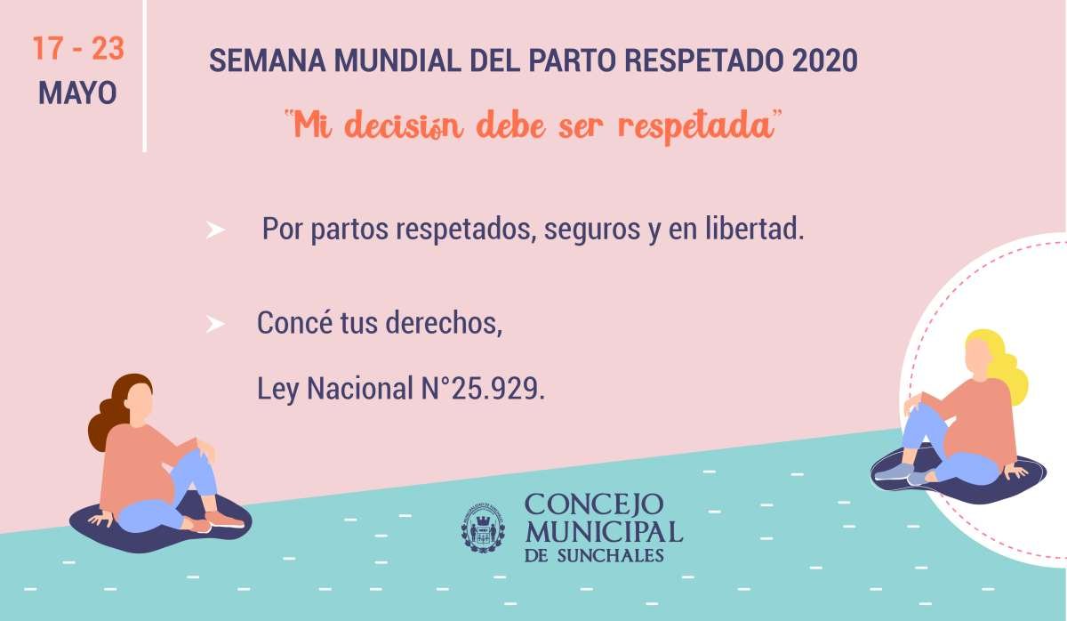 Del 17 al 23 de mayo se conmemora la Semana Mundial del Parto Respetado, promoviendo cada año un lema diferente, siendo en 2020: “Mi decisión debe ser respetada”.