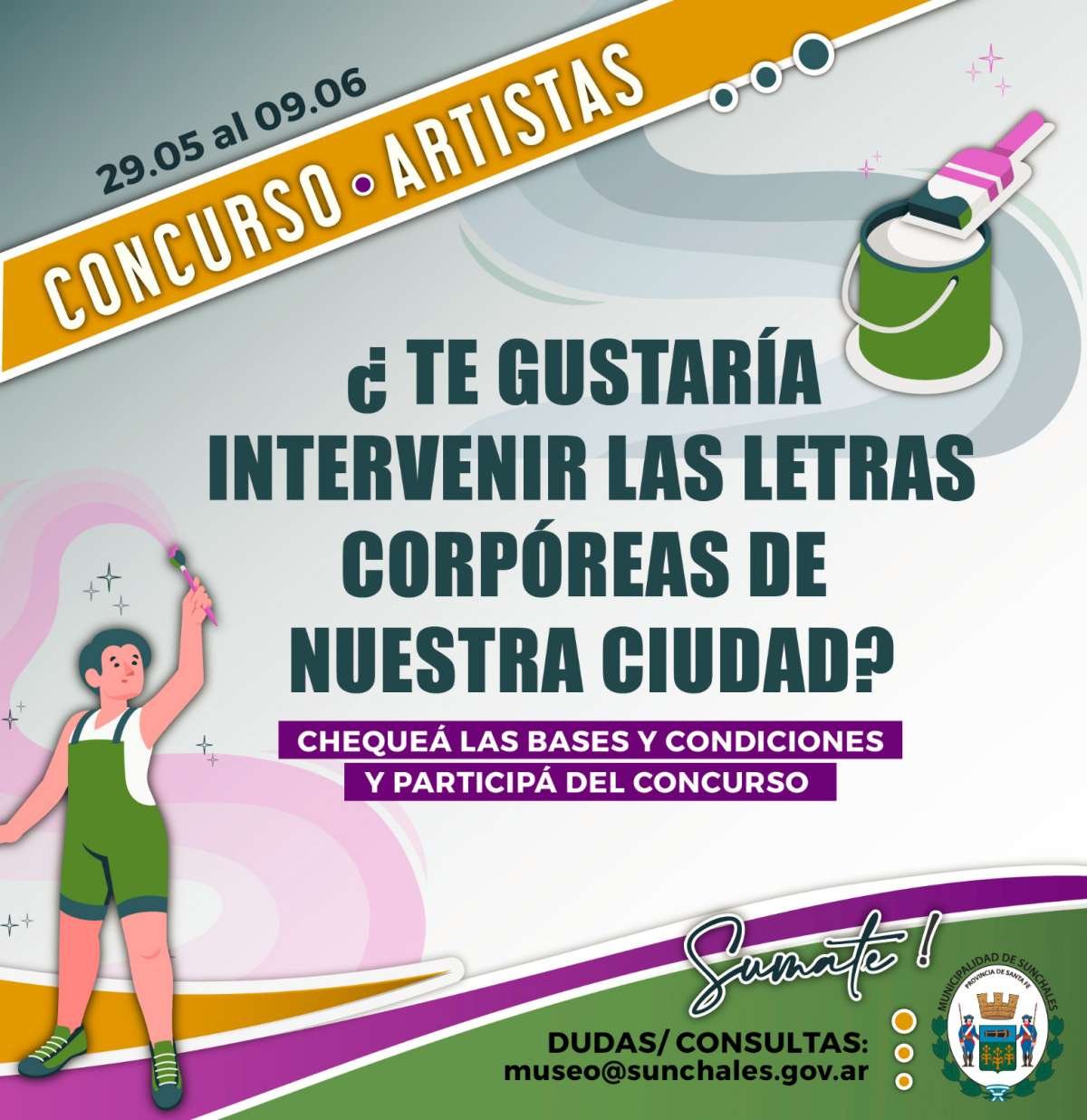La Municipalidad, través del Museo Municipal «Basilio Donato» efectuó un llamado a los artistas locales para participar del concurso para la renovación de las letras corpóreas «Sunchales», las cuales se encuentran en la intersección de las calles Av. Yrigoyen esquina General Paz.