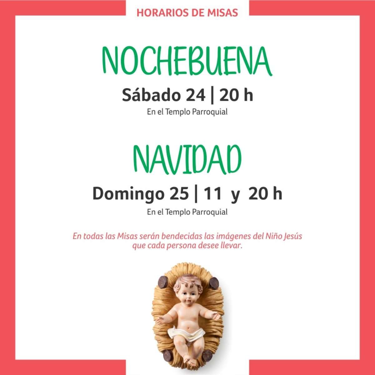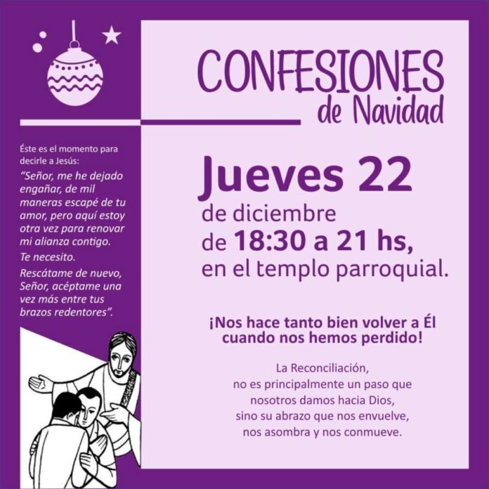Sociedad Confesiones y Misa de Navidad en la Parroquia San Carlos 22/12/2022 Por Redacción SH 67 Compartir FacebookXWhatsAppEmail Desde la Secretaría de la parroquia «San Carlos Borromeo» informaron acerca de cómo se realizarán las misas de Navidad y también cómo se concretarán las confesiones. Aquí, el cronograma establecido. Temasconfesionesmisas Compartir FacebookXWhatsAppEmail Relacionadas Actividades parroquiales 06/03/2026 Misas de Navidad en parroquia «San Carlos» 24/12/2025 Nuevos horarios de misas en la parroquia «San Carlos» 06/12/2025 Ultimas noticias LRF – F3: Libertad juega mañana al mediodía 28/03/2026 ARB F – F3: Unión frenó a San Lorenzo 28/03/2026 ARB F – F3: Ajustada derrota de Libertad 28/03/2026