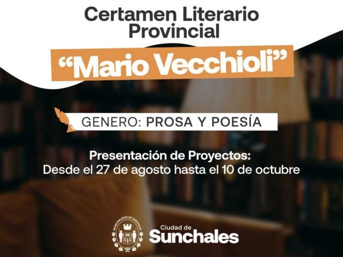 La Municipalidad de Sunchales, junto al Centro de Estudios de la Lengua de Sunchales, Comisión Cultural Municipal, invitan a participar del Certamen Literario Provincial «Mario Vecchioli «en su edición N° 41.