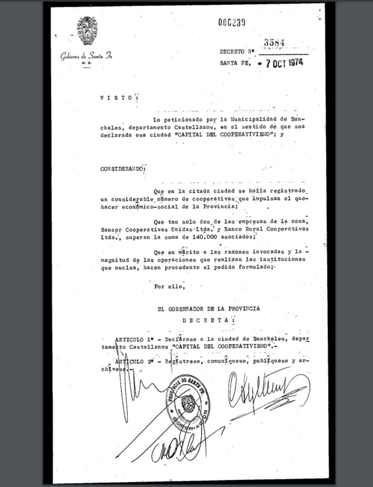 Es así. El lunes de esta semana, se cumplieron cinco décadas de la rúbrica del Decreto Nº 03584/1974, a través del cual se nos otorgó dicho reconocimiento y no se hizo -hasta este momento- ninguna alusión, mención… mucho menos un acto formal, un reconocimiento, una evocación siquiera a quienes hace tantos años impulsaron el primero de los hitos que en este sentido fue cosechando la ciudad a lo largo del tiempo, en una historia de la cual poco se conoce más allá de la formalidad de gestión encarada por don Julio César Sartini, el Intendente de turno.