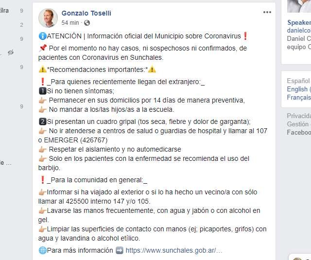 De manera categórica, el Municipio a través del propio Intendente Gonzalo Toselli desmintió versiones circulantes que daban cuenta de situaciones sospechosas de personas relacionadas con salud.