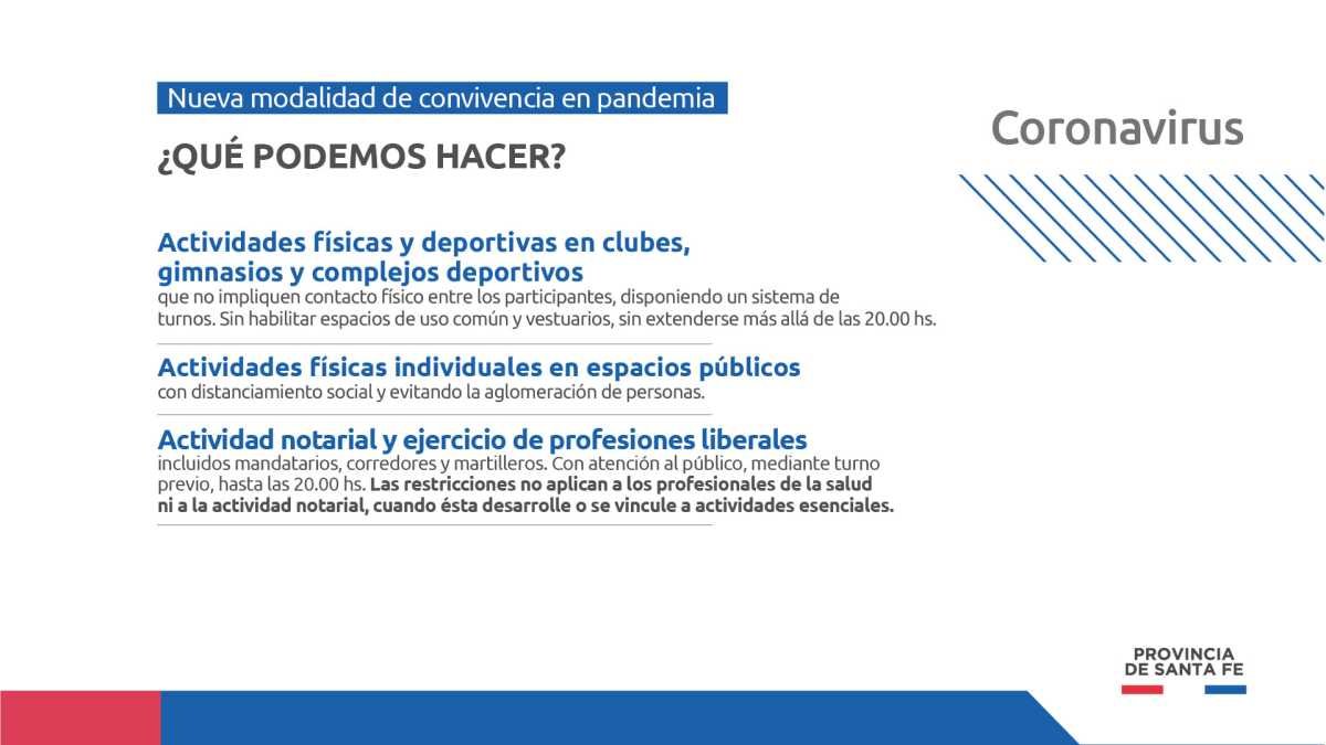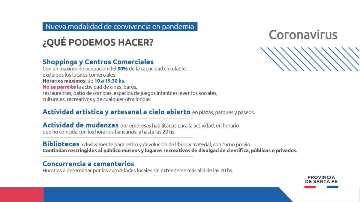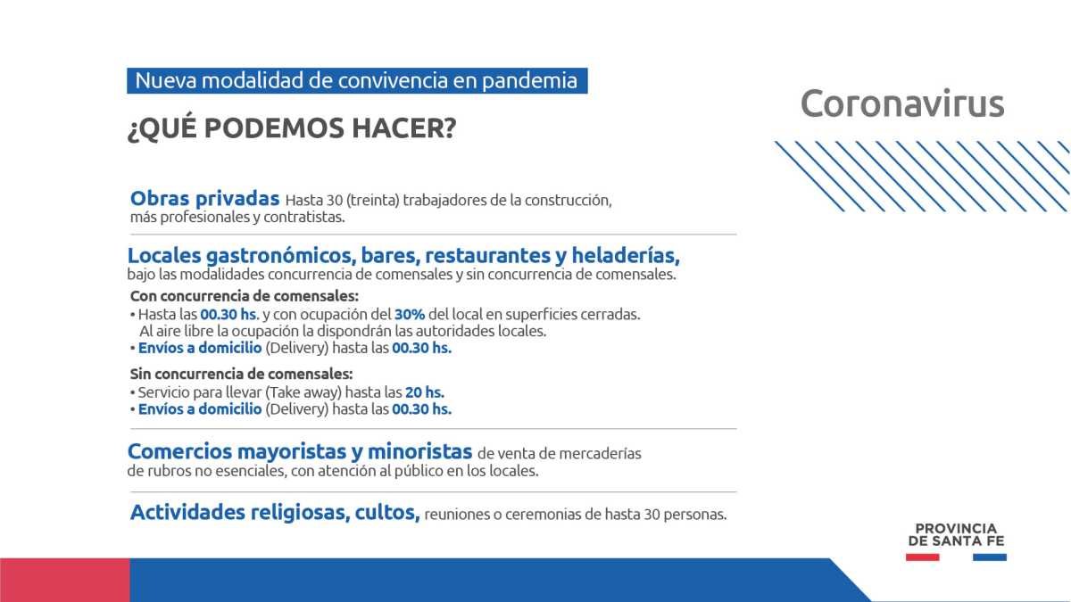 En ciudades de la zona -tal el caso de Rafaela- en conjunto entre Intendente y Concejo, resolvieron liberar parte de las actividades, añadiendo más horas a los trabajos ya habilitados. Aquí, se espera para las próximas horas alguna notificación oficial o convocatoria a conferencia de prensa.