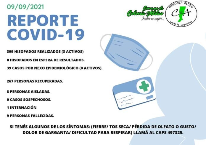 La Comuna de Colonia Aldao dio a conocer un nuevo Reporte Epidemiológico, en el cual señalan que actualmente tienen solo tres casos positivos activos de Covid19, con ocho personas aisladas y un internado. Además, no hay casos en espera de resultados y son 267 los Recuperados.