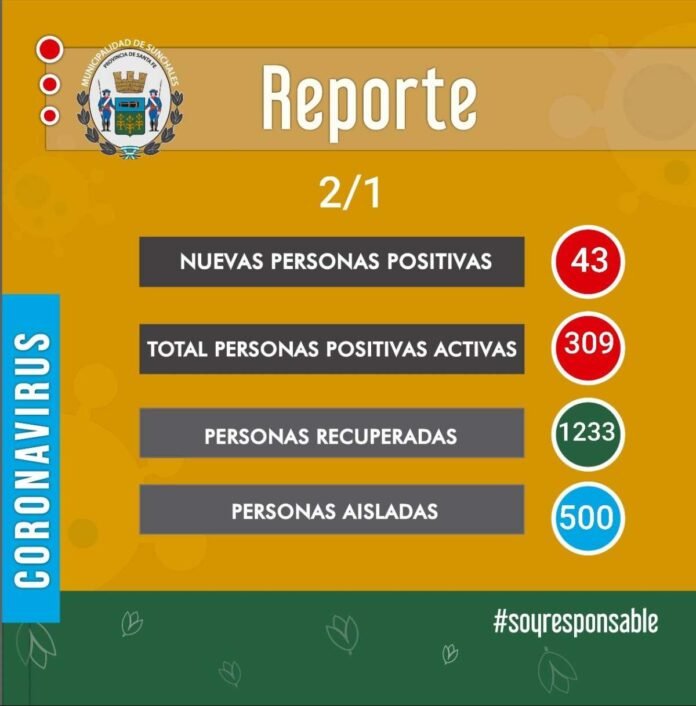 El salto en los positivos regresó a las tres decenas de activos, ubicándose el total en 309 sunchalenses, de los cuales, ocho se encuentran en el hospital «Almícar Gorosito», dos en la Unidad de Cuidados Críticos Covid19 y 299 en sus domicilios.