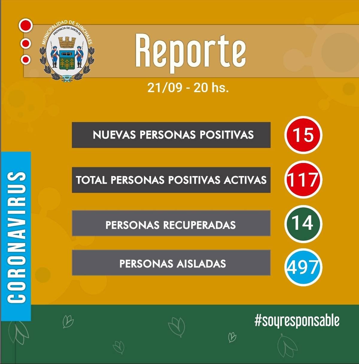 Finalmente, cabe consignar que tras un descenso de 20 personas aisladas en la mañana de hoy, la cifra volvió a ajustarse a la suba para llegar a 497.