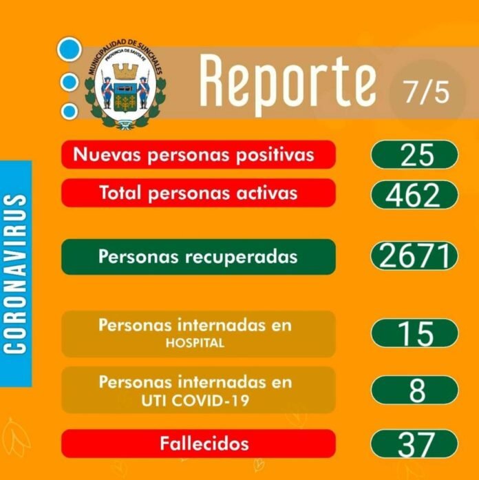El Reporte Epidemiológico de hoy viernes repite el promedio de esta semana, con 25 nuevos positivos, en una curva que se ha estabilizado, reduciéndose respecto de la semana anterior. Los casos activos suman 462 sunchalenses, siendo 15 los internados en el hospital y 8 en la Terapia Intensiva.