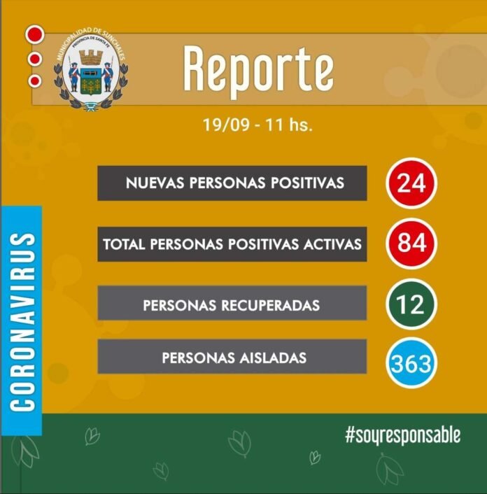 De esta manera, cuando aún resta el segundo informe del día, ya podemos advertir que se marca un nuevo record en cuanto a confirmaciones. Además, hay que referenciar que de estas dos docenas, 23 fueron mediante hisopados y una por nexo epidemiológico.