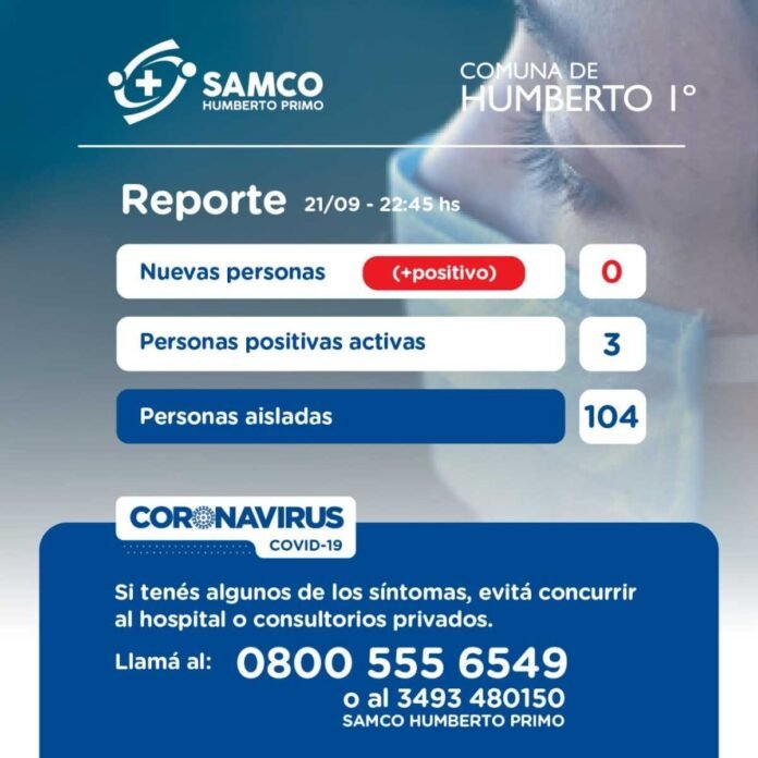 RegiónHumberto 1° Covid19: Humberto con 3 positivos y más de 100 aislados 22/09/2020 Por Redacción SH 95 Compartir FacebookTwitterWhatsAppEmail La Comuna de Humberto actualizó su situación epidemiológica, señalando la presencia de tres casos positivos en dicha localidad y elevando a la vez a 104 los casos de personas aisladas. TemasCoronavirusCovid19Humberto Compartir FacebookTwitterWhatsAppEmail Relacionadas Humberto: Allanamientos positivos y secuestro de múltiples elementos 21/05/2023 Humberto: Detenidos por robar combustible 10/02/2023 Covid19: Comienzan a colocar la vacuna bivalente 06/02/2023 Ultimas noticias Carnavales y un recuerdo obligado: «El Profesor Ziatismosky» 14/02/2026 De eso no se habla: Otro inicio de clases sin ciclovías 14/02/2026 SAT: Anticipan lluvias importantes 14/02/2026