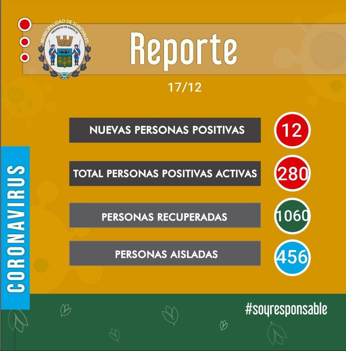 Por otra parte, cabe consignar que actualmente suman 1060 las personas recuperadas, 456 los aislados y 18 los sunchalenses fallecidos por causas vinculadas a coronavirus.