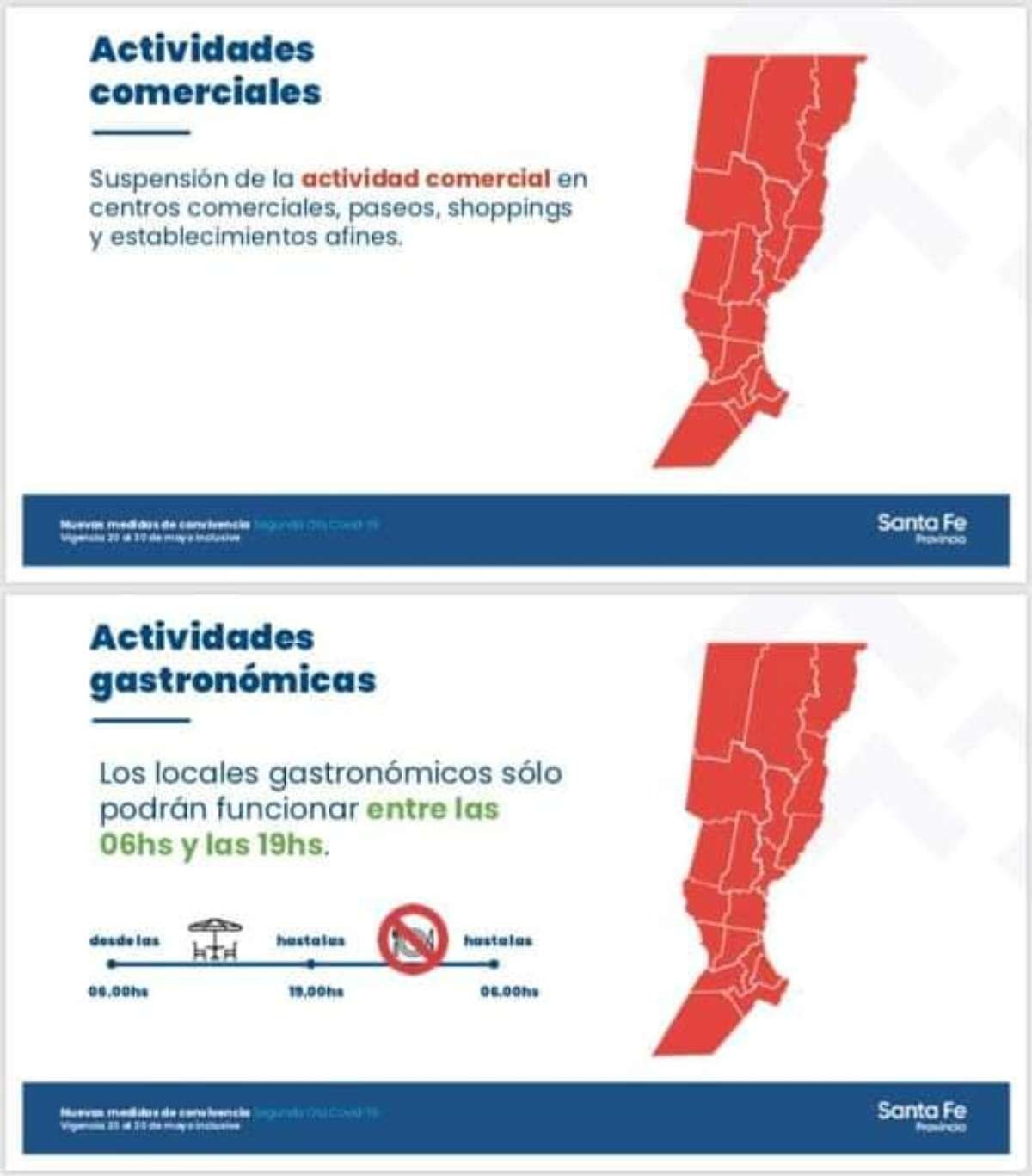 En últimas horas de hoy martes, el Gobierno de Santa Fe dio a conocer las nuevas restricciones que regirán en toda la provincia a partir de las cero horas de este jueves y que se extenderán hasta el 31 de este mes para bajar la cantidad de casos de coronavirus.