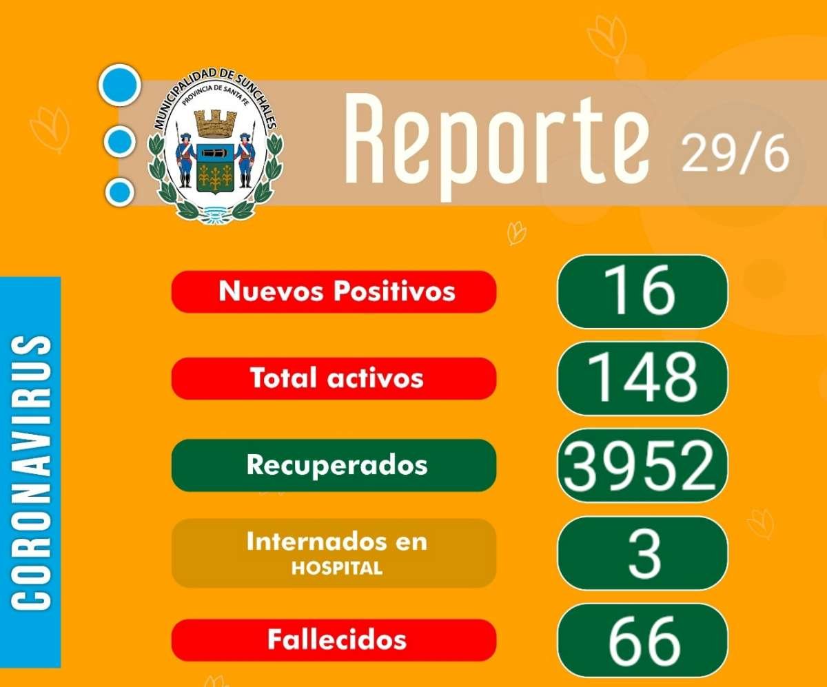 Interés general Covid19: La semana continúa con 16 nuevos positivos 29/06/2021 Por Redacción SH 31 Compartir FacebookXWhatsAppEmail El Reporte Epidemiológico de hoy lunes, dejó como resultado la confirmación de 16 nuevos casos positivos de Covid19. El total de activos es de 148 sunchalenses, con tres personas internadas en el hospital «Almícar Gorosito». TemasCoronavirusCovid19 Compartir FacebookXWhatsAppEmail Relacionadas Covid19: Comienzan a colocar la vacuna bivalente 06/02/2023 Un año de crecimiento pero con materias pendientes 31/12/2022 Covid19: La Provincia pidió usar el barbijo en el transporte de corta y larga distancia 17/12/2022 Ultimas noticias AMB Formativas – F5: Libertad se midió con Villa Trinidad 10/04/2026 AMB – F5: Libertad visita a Porteña 10/04/2026 ARB – F4: Este fin de semana vuelven las Formativas 10/04/2026