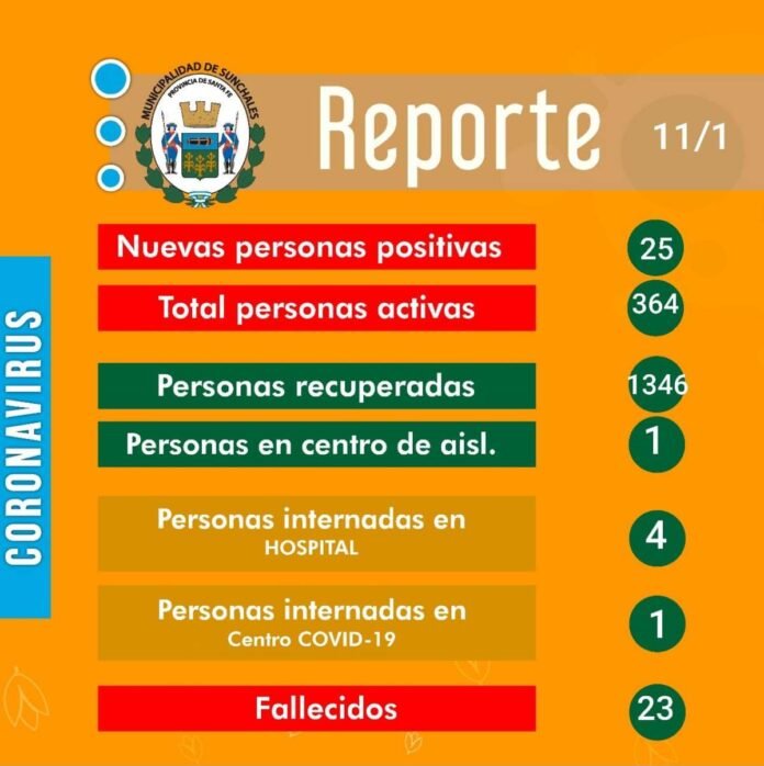 Por otra parte, ya suman 1346 los sunchalenses recuperados.