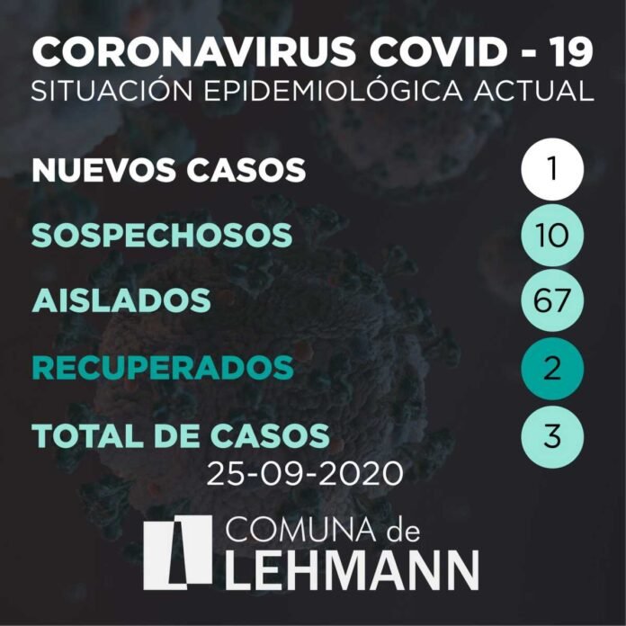 RegiónLehmann Covid19: Lehmann confirmó su tercer caso positivo 25/09/2020 Por Redacción SH 136 Compartir FacebookXWhatsAppEmail La Comuna de Lehmann actualizó su situación epidemiológica a la jornada de hoy, señalando que se sumó un nuevo caso positivo, el cual lleva la cuenta total a tres positivos activos. Además, aguardan por resultados de una decena de casos sospechosos. TemasCoronavirusCovid19Lehmann Compartir FacebookXWhatsAppEmail Relacionadas Covid19: Comienzan a colocar la vacuna bivalente 06/02/2023 Un año de crecimiento pero con materias pendientes 31/12/2022 Covid19: La Provincia pidió usar el barbijo en el transporte de corta y larga distancia 17/12/2022 Ultimas noticias Running: Sunchalenses presentes en «Roca Corre» 23/03/2026 LRF – F2: Unión se quedó con el clásico 23/03/2026 El arte tiene rostro de mujer 22/03/2026