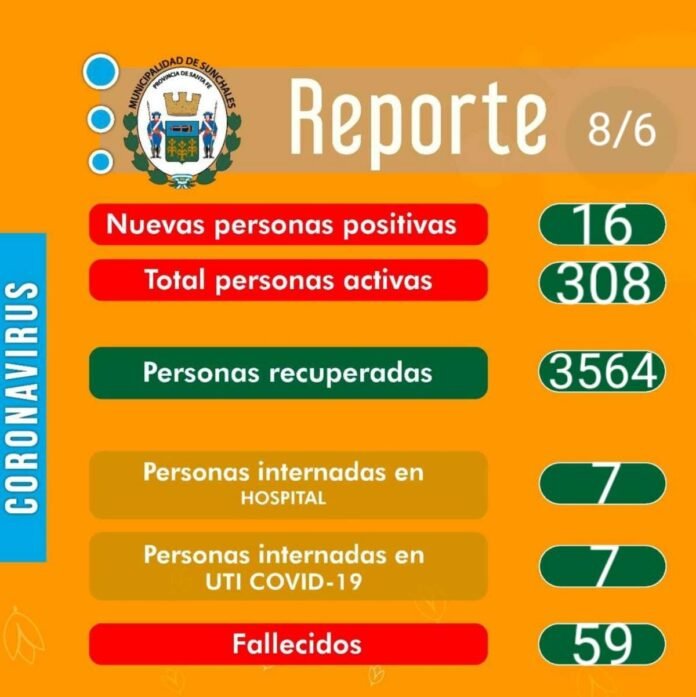 El Reporte Epidemiológico de hoy martes volvió a mostrar cifras alentadoras en cuanto a la reducción de casos diarios, con 16 nuevos positivos. De esta manera también se reducen los casos totales activos, siendo de 308 sunchalenses. Además, hay 7 personas internadas en el hospital y otras tantas en Terapia Intensiva.
