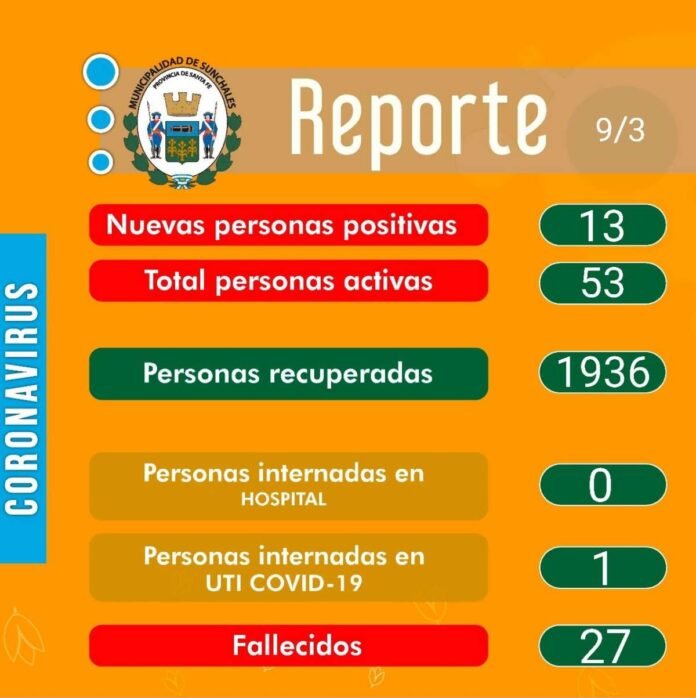 Interés general Covid19: Martes con trece nuevos positivos 10/03/2021 Por Redacción SH 24 Compartir FacebookXWhatsAppEmail El Reporte Epidemiológico de ayer volvió a estar en las dos cifras, confirmándose trece nuevos casos positivos de Covid19 en la ciudad. De esta forma, se sostiene una curva ascendente diaria, llevando el total de activos a 53 sunchalenses. TemasCoronavirusCovid19 Compartir FacebookXWhatsAppEmail Relacionadas Covid19: Comienzan a colocar la vacuna bivalente 06/02/2023 Un año de crecimiento pero con materias pendientes 31/12/2022 Covid19: La Provincia pidió usar el barbijo en el transporte de corta y larga distancia 17/12/2022 Ultimas noticias A 230 años de la creación del Fuerte 11/04/2026 Golf: Sunchales, sede del clasificatorio para la Copa Santa Fe de Golf 2026 10/04/2026 EPE: alerta por publicidades engañosas en redes sociales y Whatsapp 10/04/2026