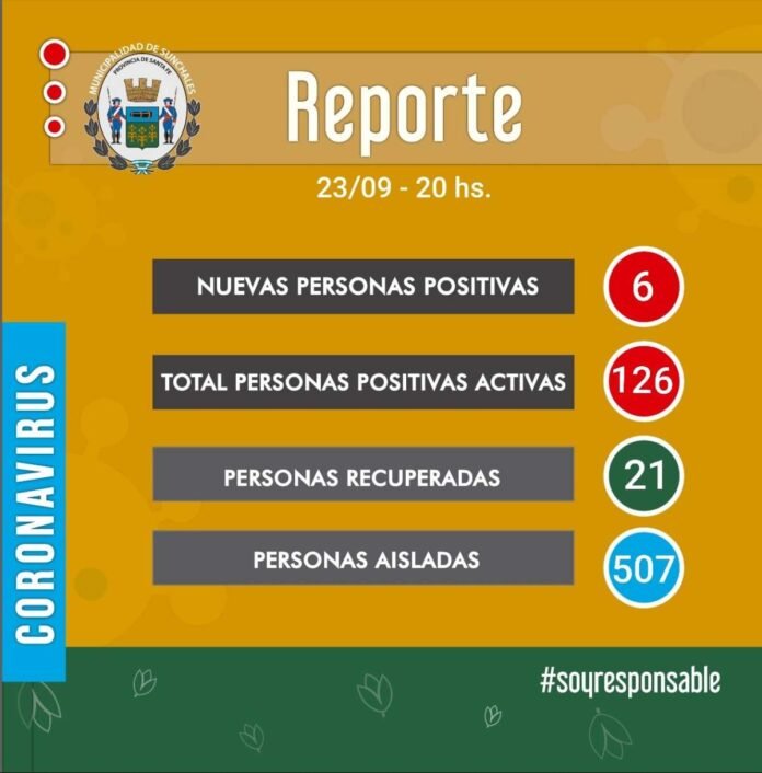 De acuerdo a lo informado por las autoridades locales, de las nueve personas que fueron diagnosticadas como positivas activas, siete fueron mediante nexo epidemiológico y las dos restantes por criterio clínico epidemiológico. De esta forma, son 126 las personas positivas en estado activo para Covid en la ciudad.