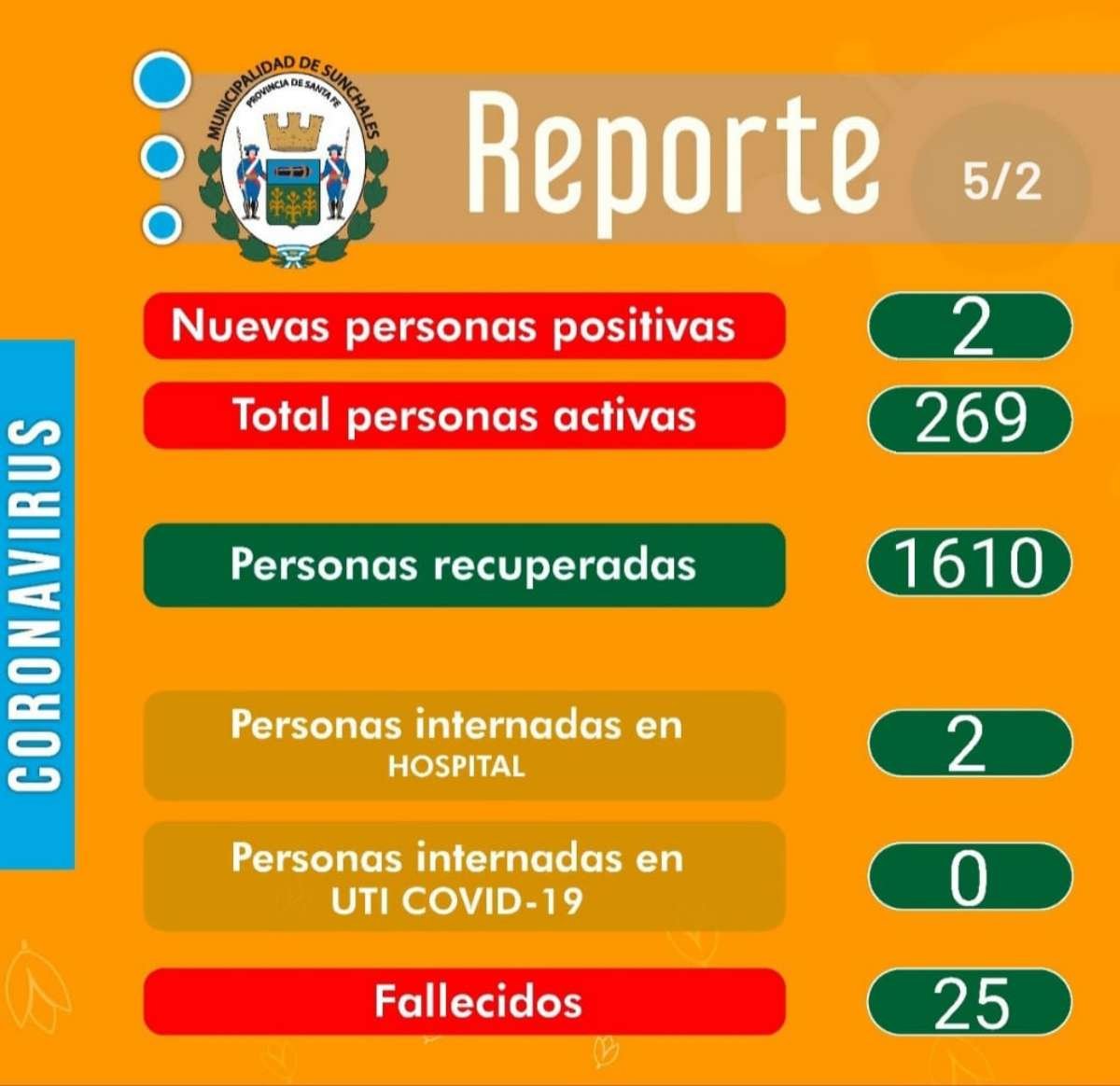 Interés general Covid19: Viernes con dos nuevos positivos 06/02/2021 Por Redacción SH 41 Compartir FacebookXWhatsAppEmail Las bajas cifras diarias de nuevos casos positivos continúa extendiéndose y en el Reporte de este viernes se informaron solamente dos nuevos casos positivos activos, llevando el total a 269 personas. TemasCoronavirusCovid19 Compartir FacebookXWhatsAppEmail Relacionadas Covid19: Comienzan a colocar la vacuna bivalente 06/02/2023 Un año de crecimiento pero con materias pendientes 31/12/2022 Covid19: La Provincia pidió usar el barbijo en el transporte de corta y larga distancia 17/12/2022 Ultimas noticias AMB – F5: Libertad y una victoria agónica que vale la punta del campeonato 11/04/2026 Litoral Gas define su hoja de ruta para concluir el Gasoducto que llegará a Sunchales 11/04/2026 A 230 años de la creación del Fuerte 11/04/2026