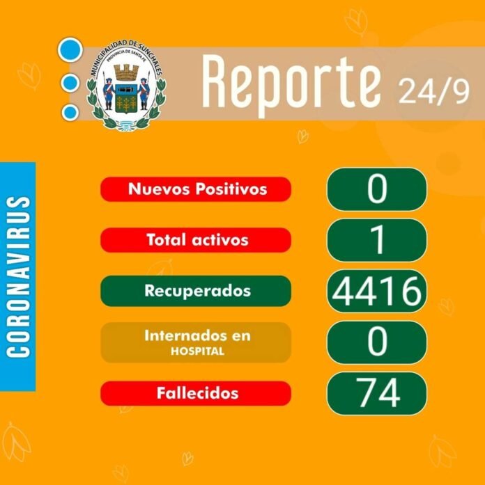 Interés general Covid19: Viernes sin confirmados y un solo caso activo 25/09/2021 Por Redacción SH 19 Compartir FacebookXWhatsAppEmail El Reporte Epidemiológico de este viernes nuevamente quedó en cero en cuanto a nuevos casos confirmados de Covid19 en la ciudad. Además, se redujo de dos a un solo caso activo que permanece vigente en Sunchales. TemasCoronavirusCovid19 Compartir FacebookXWhatsAppEmail Relacionadas Covid19: Comienzan a colocar la vacuna bivalente 06/02/2023 Un año de crecimiento pero con materias pendientes 31/12/2022 Covid19: La Provincia pidió usar el barbijo en el transporte de corta y larga distancia 17/12/2022 Ultimas noticias Ruta N° 34: este miércoles habilitarán nuevamente el tránsito 07/04/2026 Box: Orecchia se presenta en La Pampa 07/04/2026 Prisión preventiva a seis investigados por atacar la Comisaría y móviles 07/04/2026