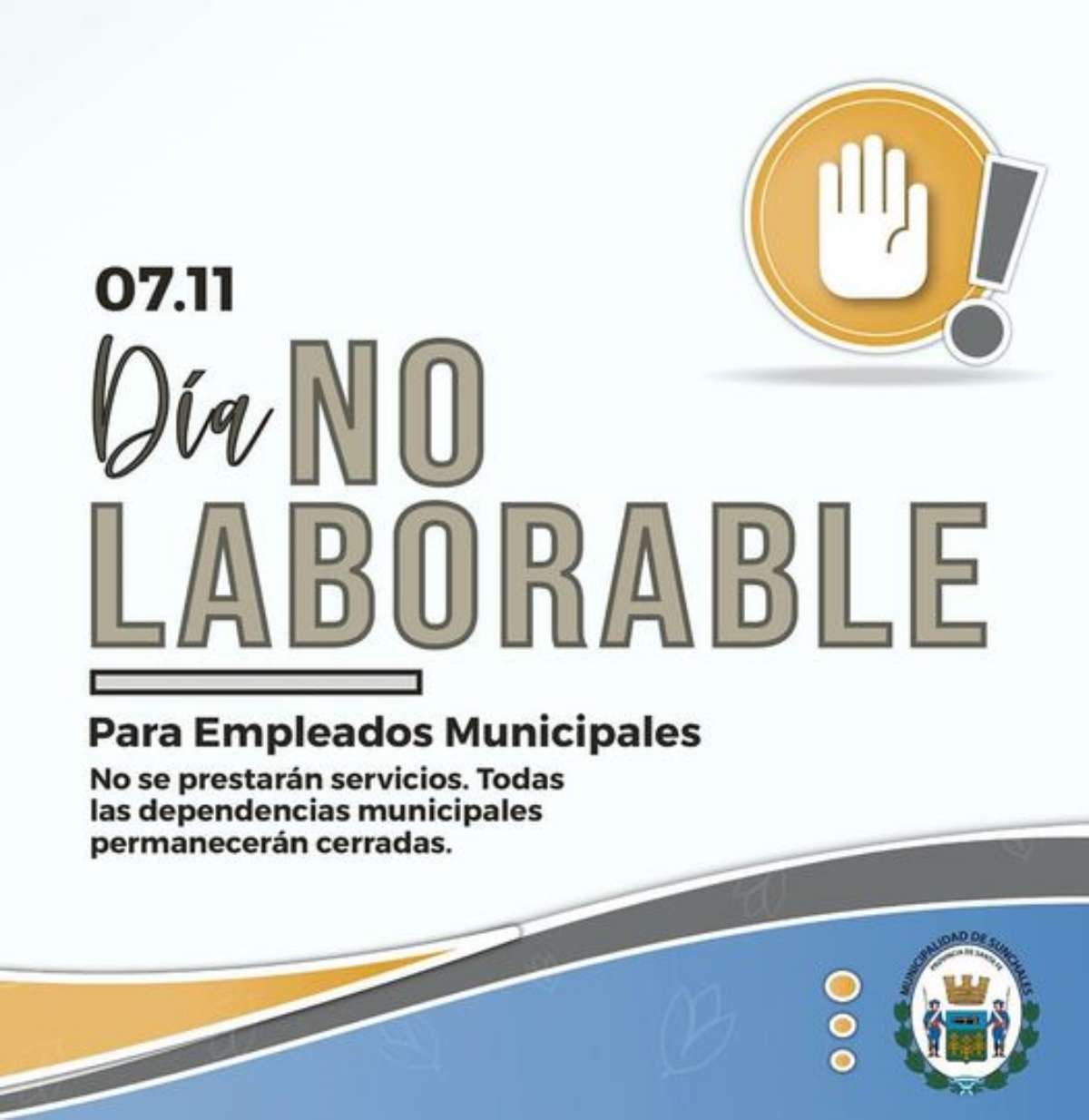 (Por: Prensa Municipalidad) – Informamos que el próximo lunes 7 de noviembre se celebrará el Día del Empleado Municipal (trasladado del 8 de noviembre). Por este motivo, no se prestarán servicios.