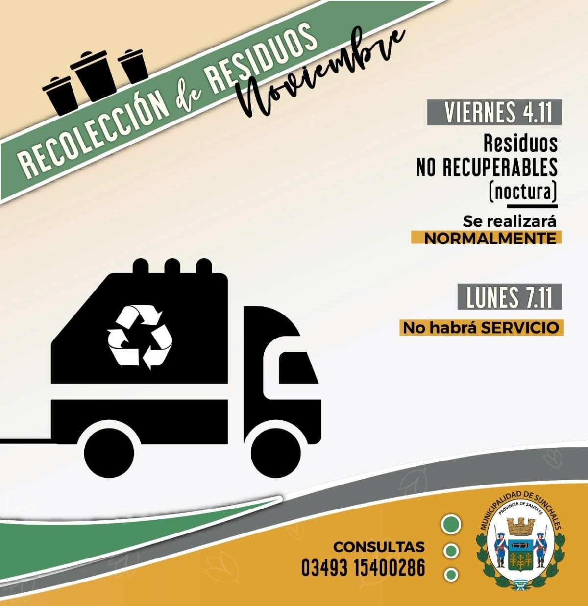 Desde el Municipio informaron cómo será el servicio de recolección de residuos para este viernes, así como también que no habrá actividad municipal el lunes venidero por celebrarse el Día del Trabajador Municipal.
