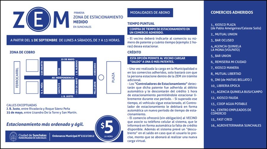 En la imagen adjunta, se pueden apreciar los diferentes aspectos que le dan forma a la iniciativa, horarios, calles incluidas, comercios adheridos y parte del sistema que con seguridad, debería ya estar acercándose a los vecinos frentistas para que tramiten la correspondiente exención de pago.