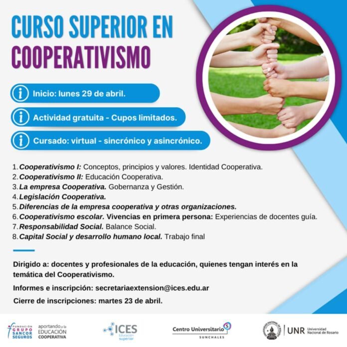 Educación Curso Superior en Cooperativismo 10/03/2024 Por Redacción SH 48 Compartir FacebookXWhatsAppEmail Desde el Ices invitan a sumarse al Curso Superior en Cooperativismo que ofrecerá la institución educativa a partir del próximo 29 de abril. Aquí presentamos las especificaciones y características del mismo: TemasCooperativismoIces Compartir FacebookXWhatsAppEmail Relacionadas A 19 años del Hermanamiento con Arrasate Mondragón 26/02/2026 Reprogramarán la Fiesta del Cooperativismo 18/12/2025 El Municipio organiza la Segunda Fiesta del Cooperativismo 17/12/2025 Ultimas noticias LRF – F3: Libertad juega mañana al mediodía 28/03/2026 ARB F – F3: Unión frenó a San Lorenzo 28/03/2026 ARB F – F3: Ajustada derrota de Libertad 28/03/2026