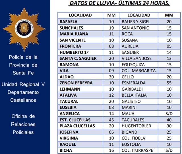 A continuación, repasamos el registro de los datos de lluvia generados por la Unidad Regional V de Policía respecto de las localidades del Departamento.
