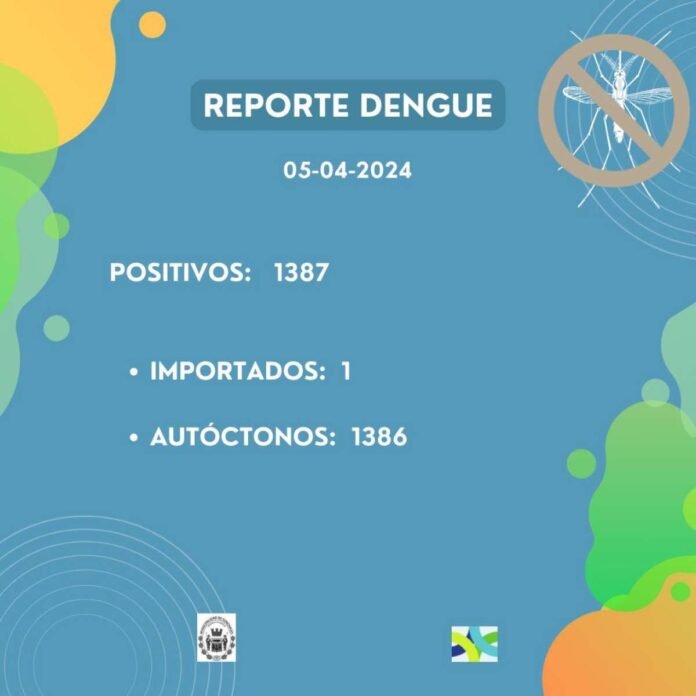 El Reporte Epidemiológico del pasado viernes, emitido por el hospital «Almícar Gorosito», informó que ya son 1387 los casos positivos detectados en la ciudad. Al igual que en las semanas previas, la curva de positivos detectados sigue elevándose y el control del mosquito en los domicilios sigue siendo fundamental para buscar aplanar la misma.