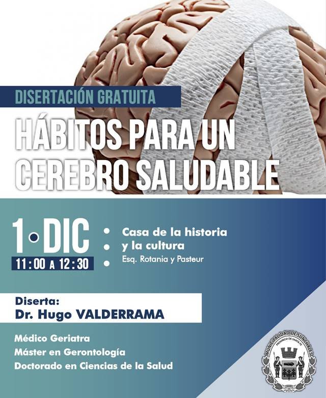 La Municipalidad de Sunchales invita a la disertación “Hábitos para un Cerebro Saludable”, a cargo del Dr. Hugo Valderrama.