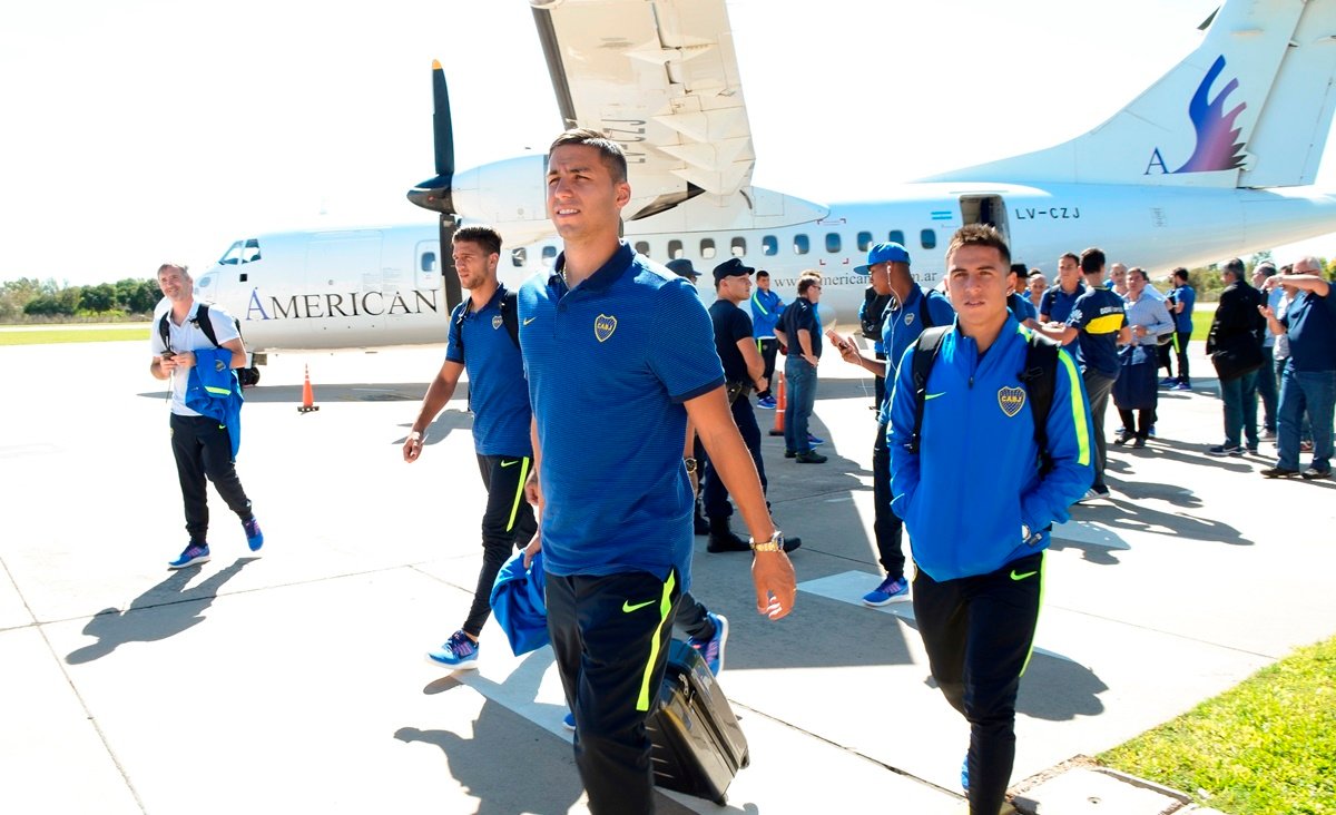 Jugadores y cuerpo técnico del club Atlético Boca Juniors aterrizaron el sábado en el Aeródromo de Sunchales, desde donde se trasladaron para disputar un partido por la Fecha 21 del Torneo de Primera División ante Atlético de Rafaela.