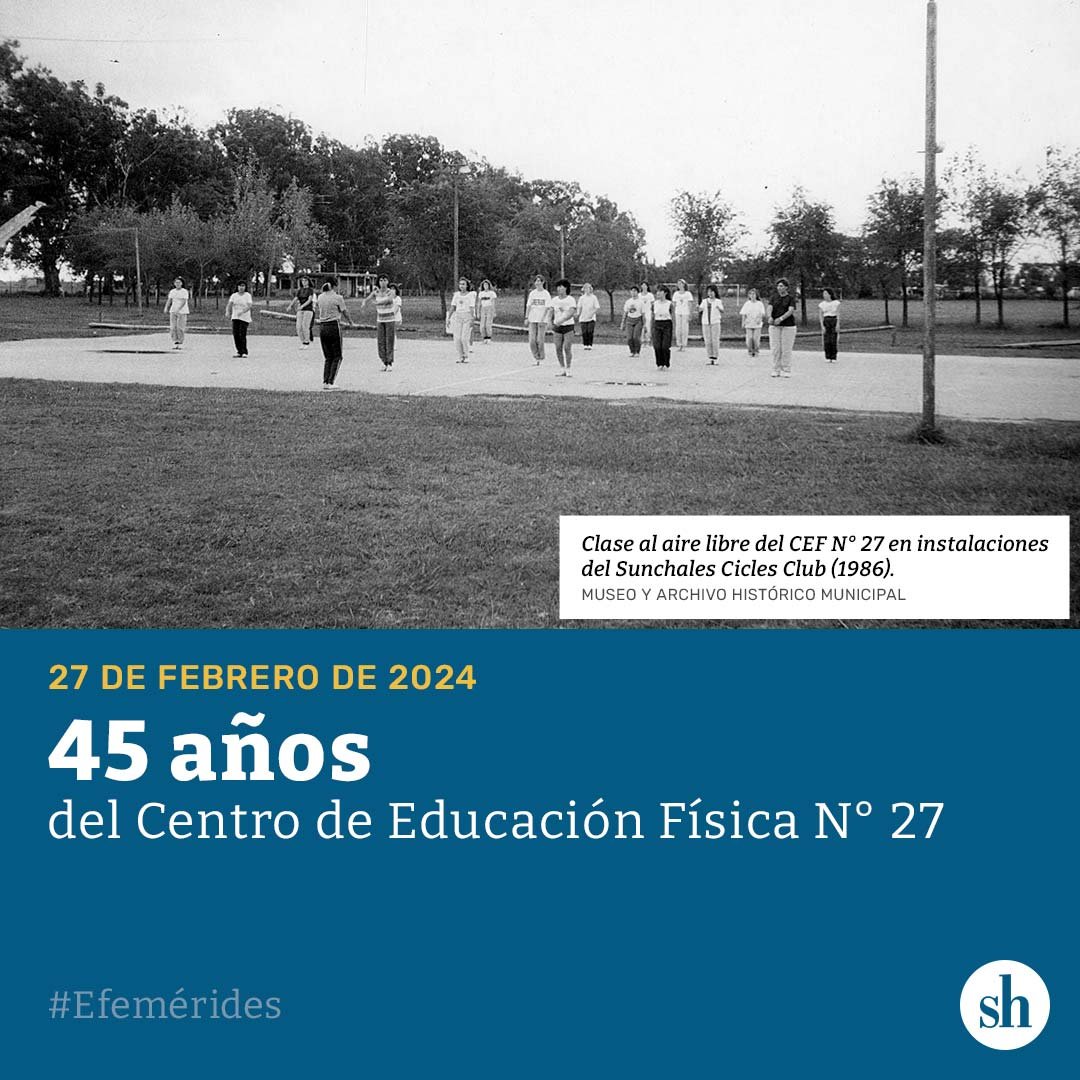 El 27 de febrero de 1979 se creaba el Centro de Educación Física N° 27 de Sunchales. A lo largo de estas cuatro décadas y media, ha sido un espacio en el cual desarrollar la actividad para miles de pequeños que pasan por el mismo a lo largo de cada ciclo lectivo.