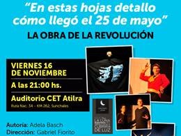 El Concejo Municipal de Sunchales invita a la comunidad a la presentación de la obra “En estas hojas detallo cómo llegó el 25 de mayo”, de la reconocida autora Adela Basch y con la adaptación y dirección de Gabriel Fiorito. La actividad se desarrollará hoy viernes 16 de noviembre, a partir de las 21, en el auditorio del Centro Educativo Tecnológico de Atilra.