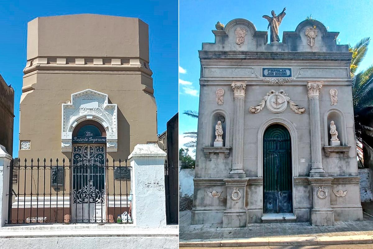 En nuestro cementerio por ejemplo se distinguen los panteones monumentales Ristorto – Ingaramo, Familias Gasparoto, Bulfone, Sola, Ramella, Vidoni – Monteferrario, Gabasio, entre otras.